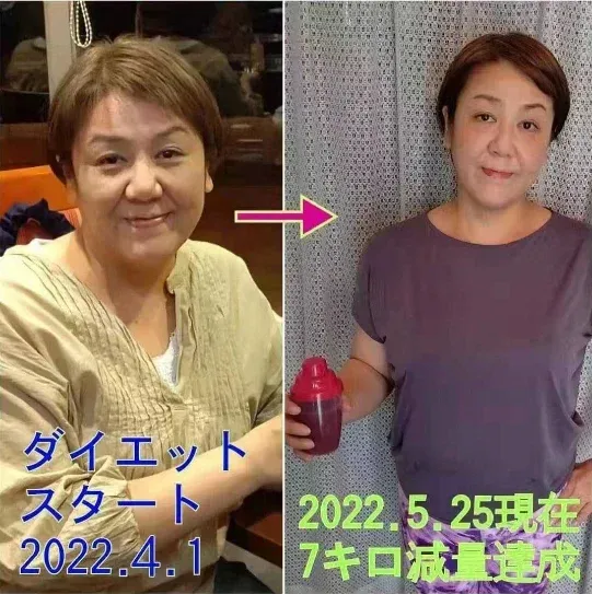 今年50歳で、更年期から体重は年々増加してしまいます。医者は「更年期以降、基礎代謝が低下するから」と言われていました。わずか3年で体脂肪率は21%から29%になってしまった。太ったら、排便も難しくなった、さらに薬物で排便を促しなければなりません。医者は「これ以上ダイエットしないと脂肪肝につながるかもしれません」と言われていました。友達からの紹介で先生のlineを追加して、先生は私の肥満の原因と体質を丁寧に分析してから、詳しいダイエットプランを立ててくれました。私の体調に合わせるダイエット製品を利用して、60日で10キロ減量し、体脂肪率も22%に戻りました。今では仕事でも生活でもだんだん自信が出てきました。先生のご指導のおかげです。
